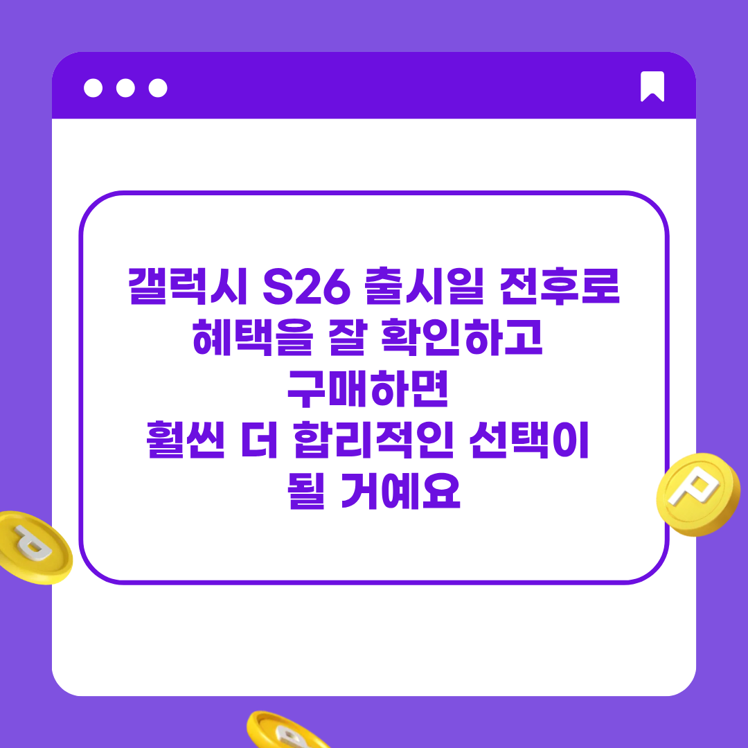 갤럭시 S26 출시일 전후로 혜택을 잘 확인하고 구매하면 훨씬 더 합리적인 선택이 될 거예요 👍