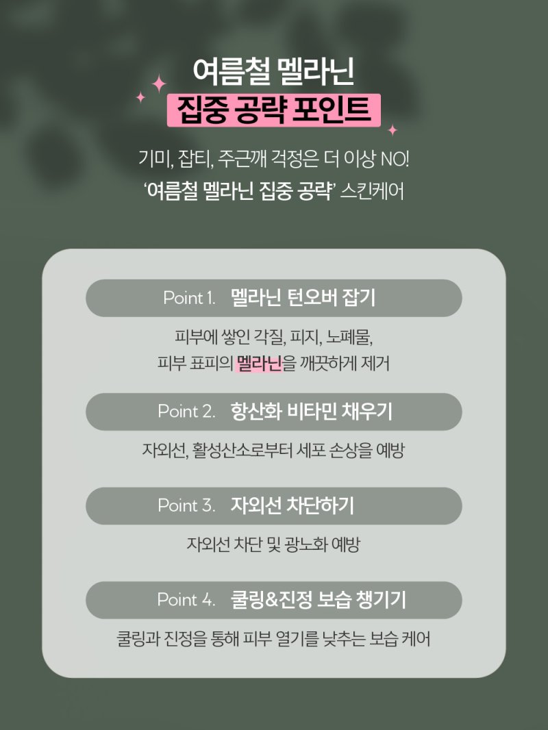 🌞 멜라닌을 미리 막아야 한여름에도 밝고 깨끗한 피부 유지!