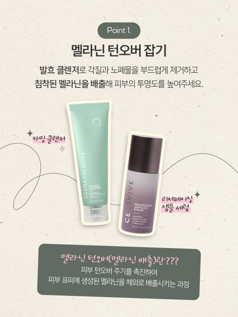 피부에 쌓인 각질과 노폐물을 제거해 멜라닌이 배출될 수 있도록 돕는 것이 중요합니다.