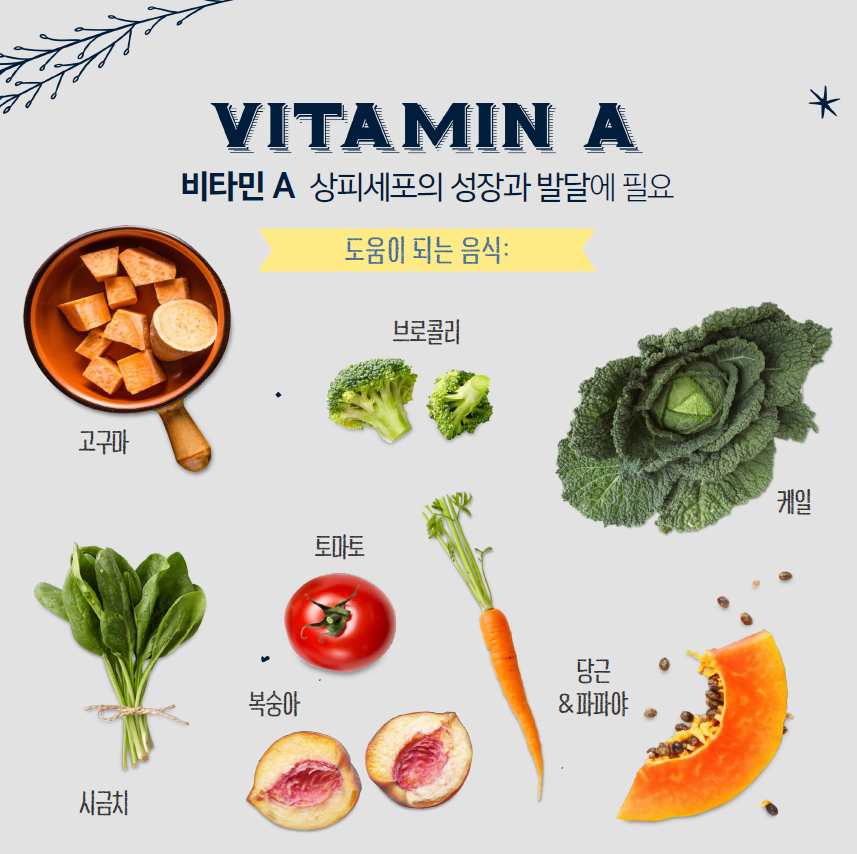 비타민 A는 눈 건강, 피부 보호, 면역력 유지에 필수입니다.