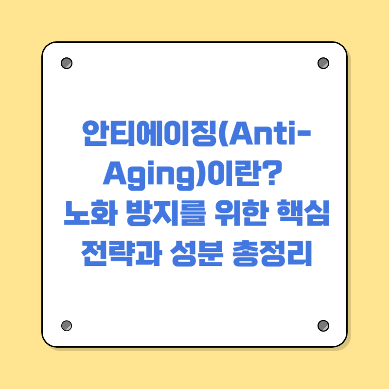 ‘안티에이징(Anti-Aging)’은 말 그대로 노화(aging)를 늦추거나 방지하는 모든 행위와 과학적 접근을 의미합니다.
