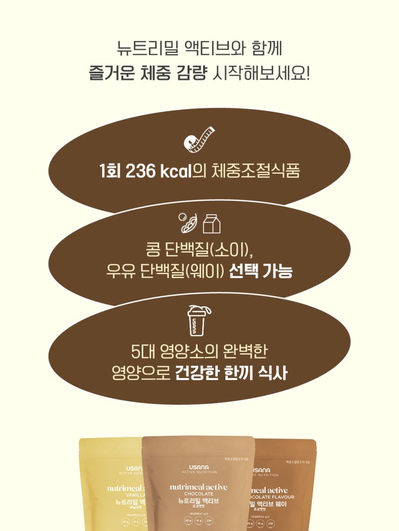 뉴트리밀 액티브는 단순한 다이어트식이 아닌, 영양 식단의 완성입니다.