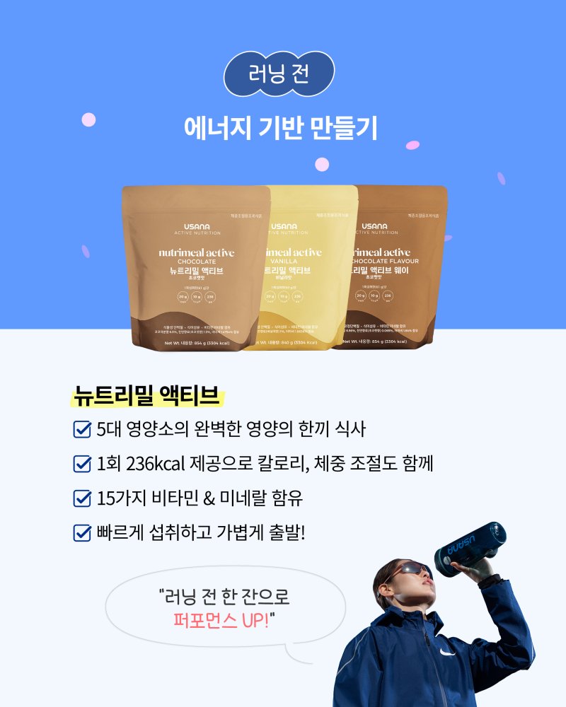 • ✔ 러닝 전, ‘뉴트리밀 액티브’로 든든하게 에너지 보충
