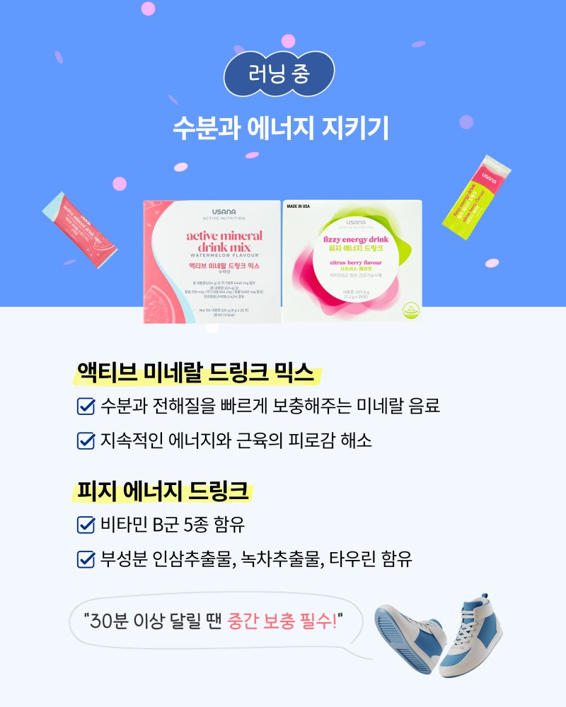 • ✔ 러닝 중, ‘미네랄 드링크 & 에너지 드링크’로 체력 유지
