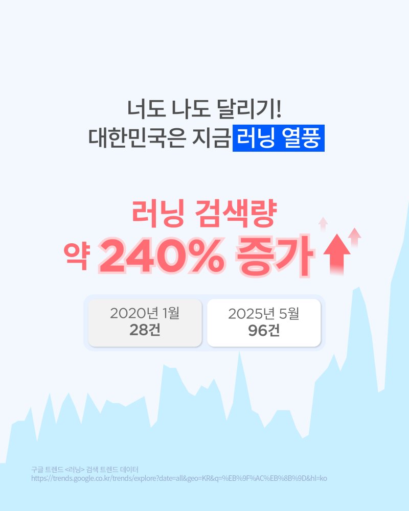실제로 2020년부터 2025년까지 러닝에 대한 온라인 검색량이 240% 이상 급증하며, 전 연령층에서 폭넓게 사랑받는 운동으로 자리잡았죠.