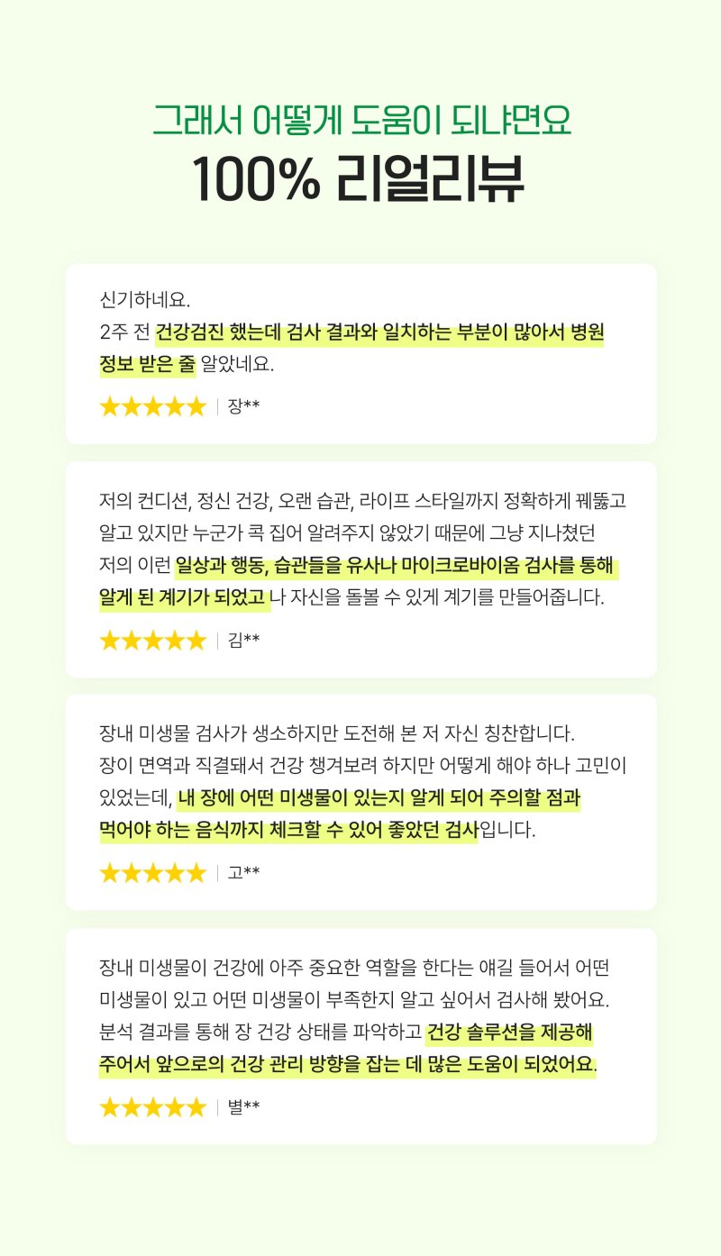 나의 장 유형과 건강 상태를 정밀하게 평가하고,