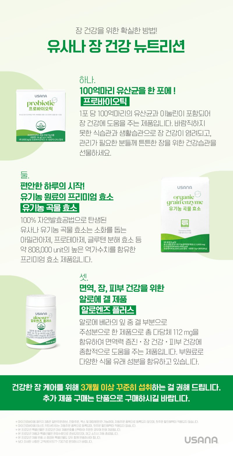 🍃 패키지에 포함된 유사나 장 건강 제품도 눈여겨보세요
