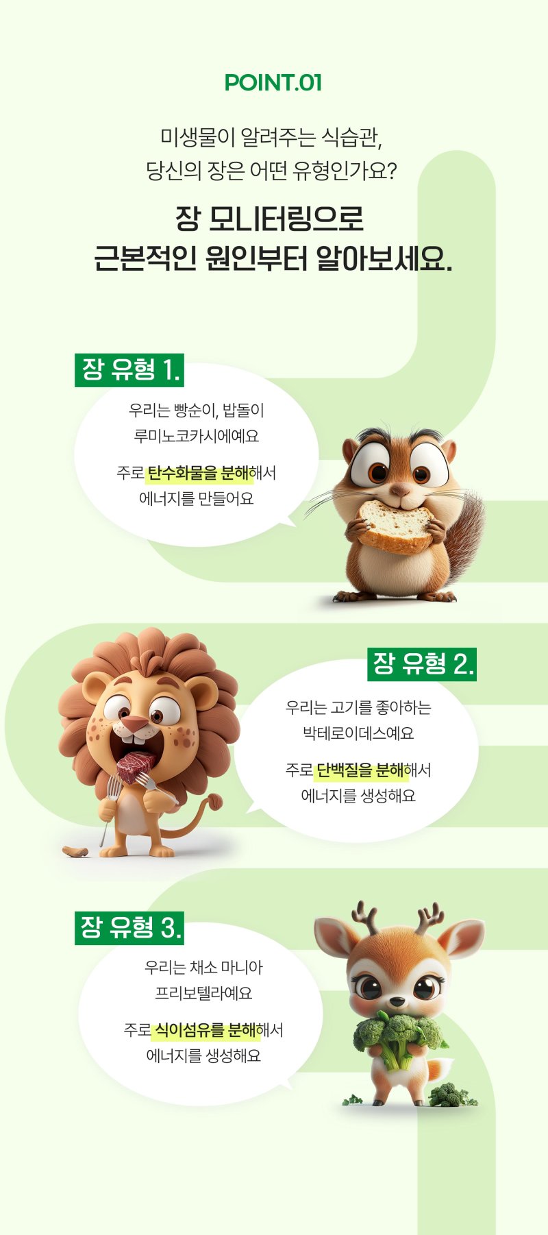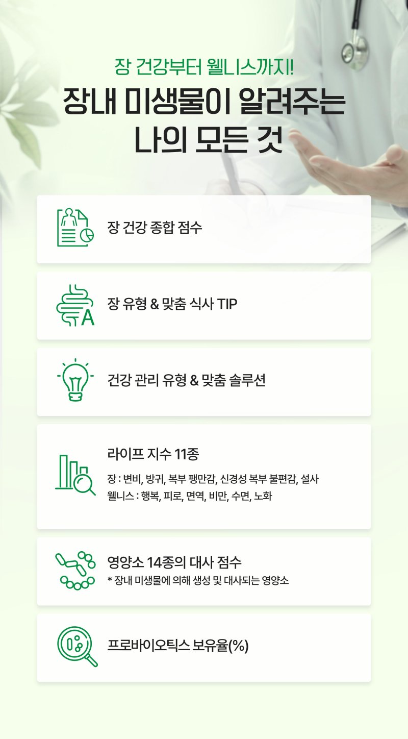 나의 장 유형과 건강 상태를 정밀하게 평가하고,