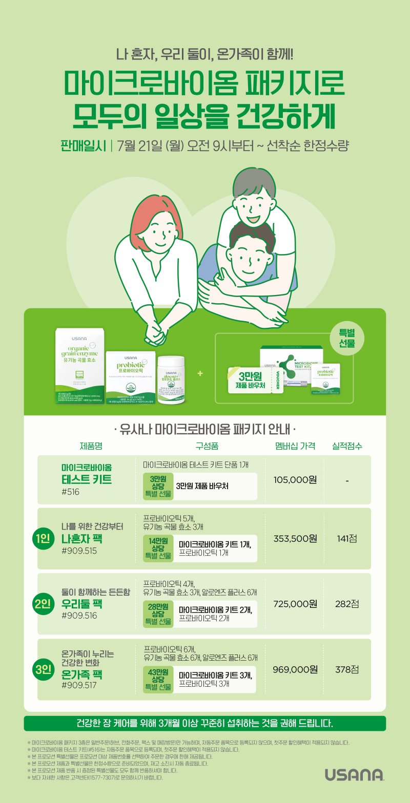 🎁 유사나 마이크로바이옴 패키지로 가족 건강까지 한 번에