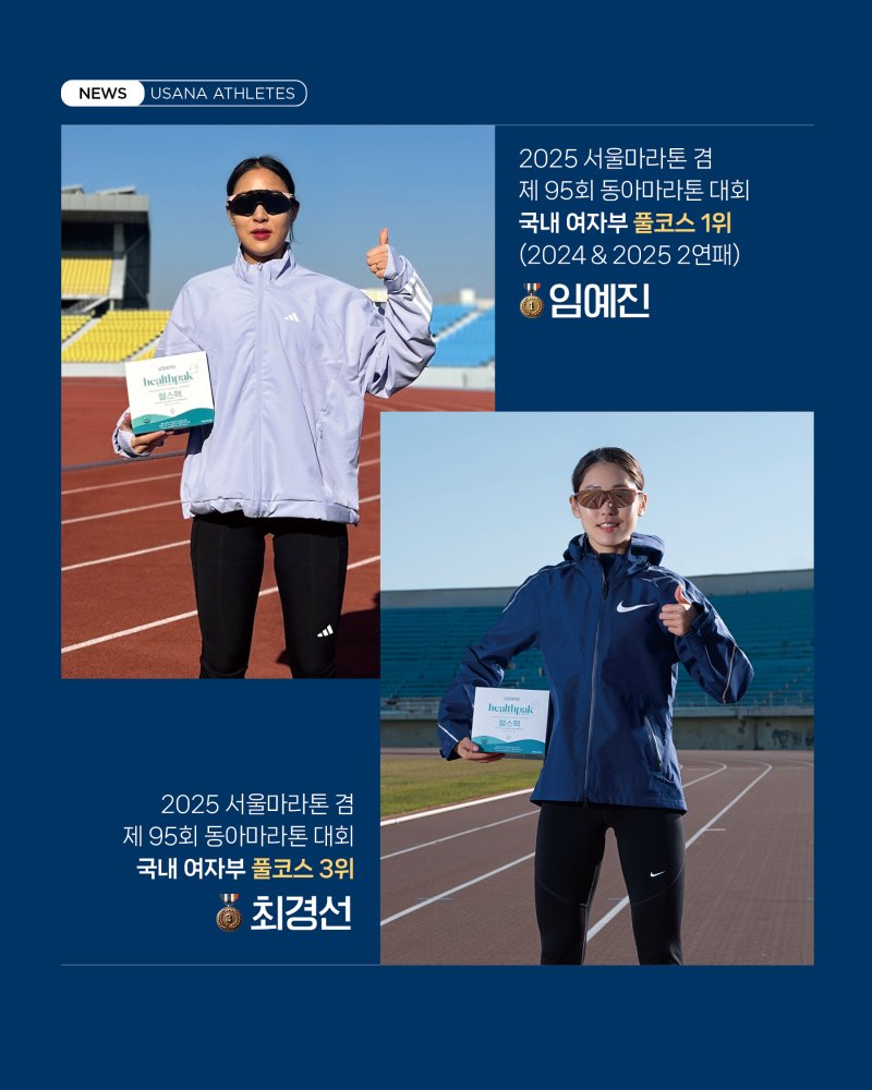 마라톤은 단순한 스포츠가 아닙니다. 한계를 넘고, 스스로를 극복하는 도전의 연속이죠. 유사나는 임예진 & 최경선 두 선수의 끊임없는 노력과 열정을 응원하며, 건강한 질주를 위해 든든한 뉴트리션 파트너로 함께하겠습니다.