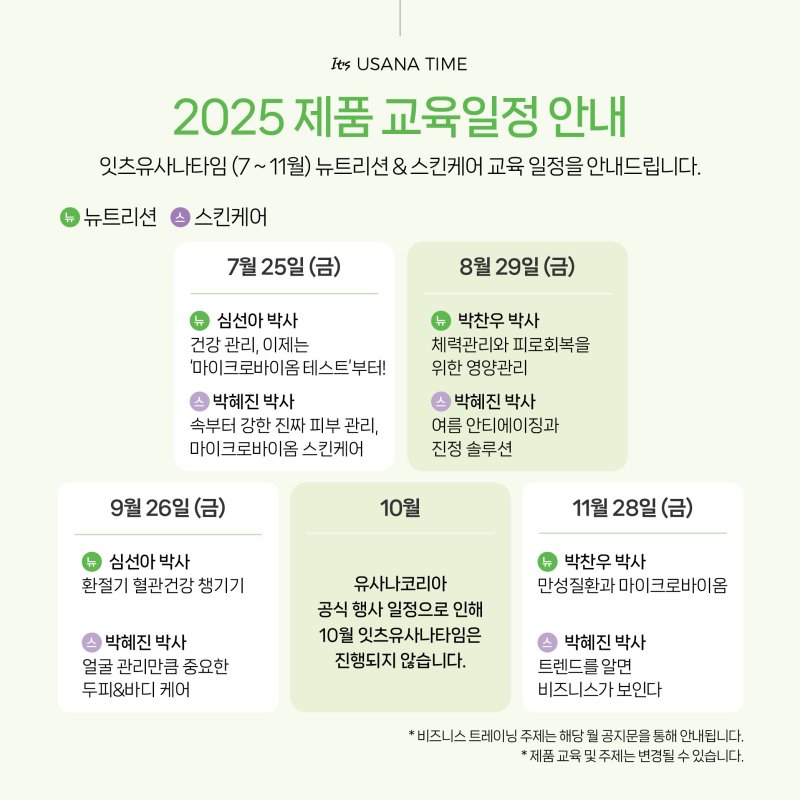 유사나의 정기 프로그램 '잇츠유사나타임(It's USANA TIME)'이 다시 돌아옵니다.