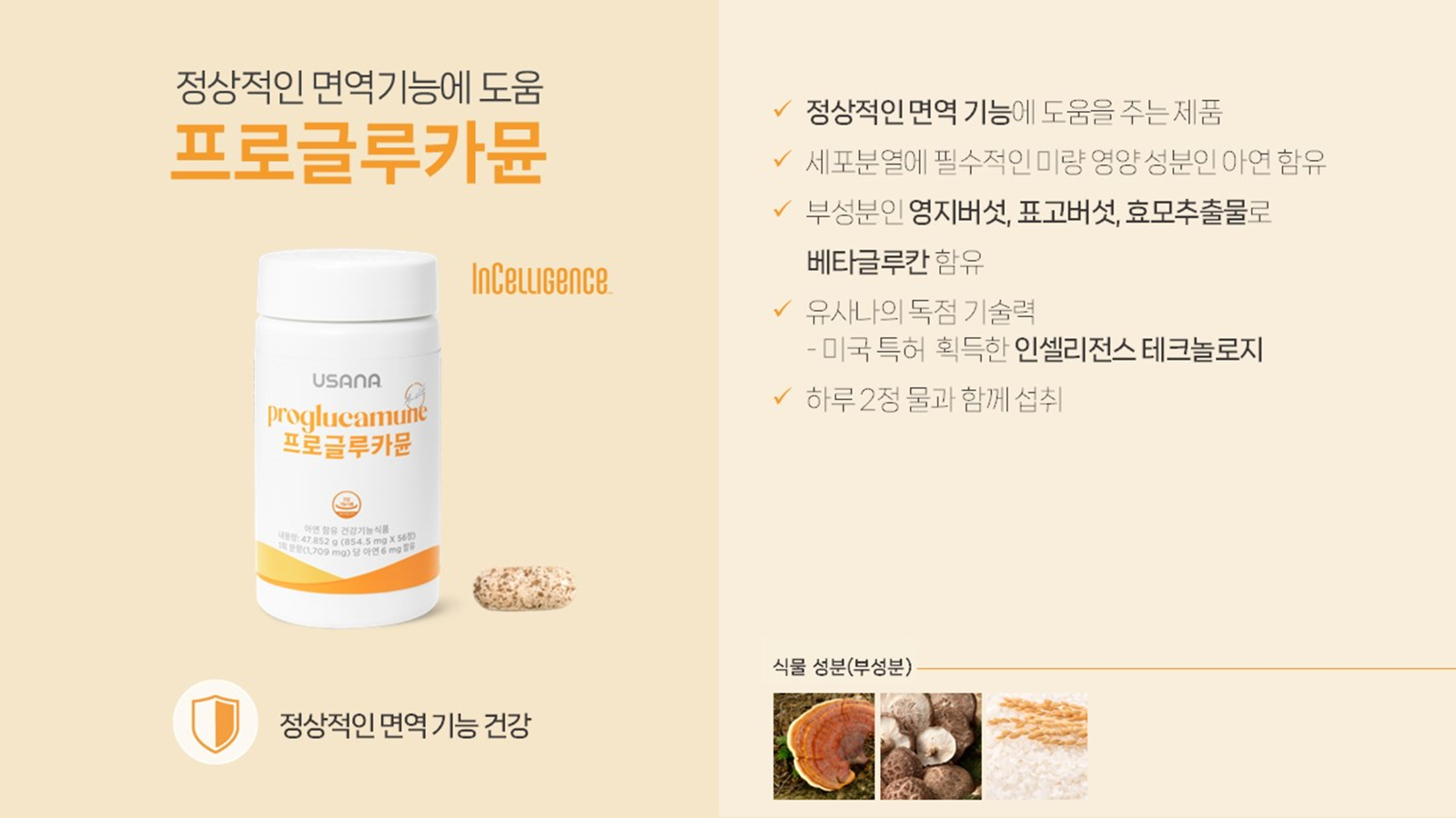 ✔ 효모추출물 – 인셀리전스 기술 적용, 신체 방어 체계 지원