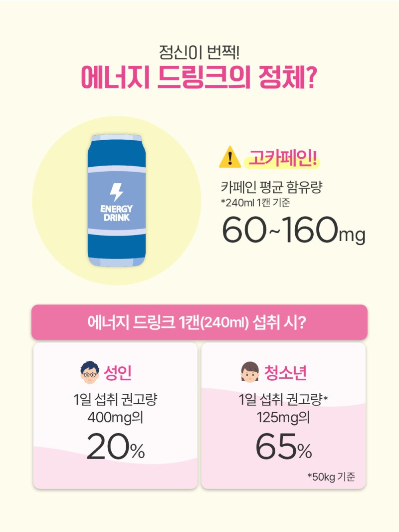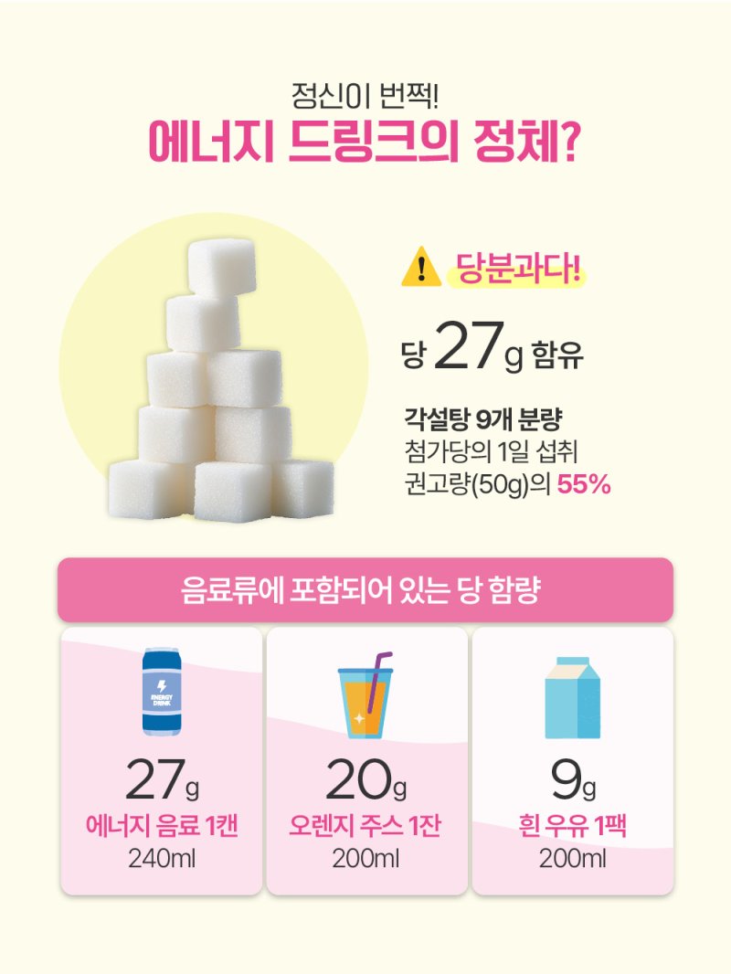 식사 후 나른함이 밀려올 때, 업무 집중이 안 될 때, 시험공부에 지칠 때 우리는 자연스럽게 에너지 드링크를 찾곤 하죠.