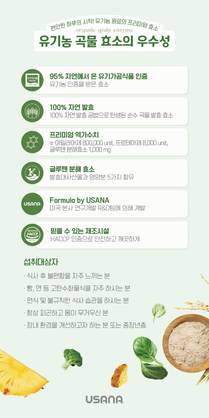 유사나 효소는 최신 기술을 적용한 5세대 유기농 곡물 효소로, 천연 원료를 사용하여 더욱 안전하고 효과적인 소화 건강을 제공합니다.