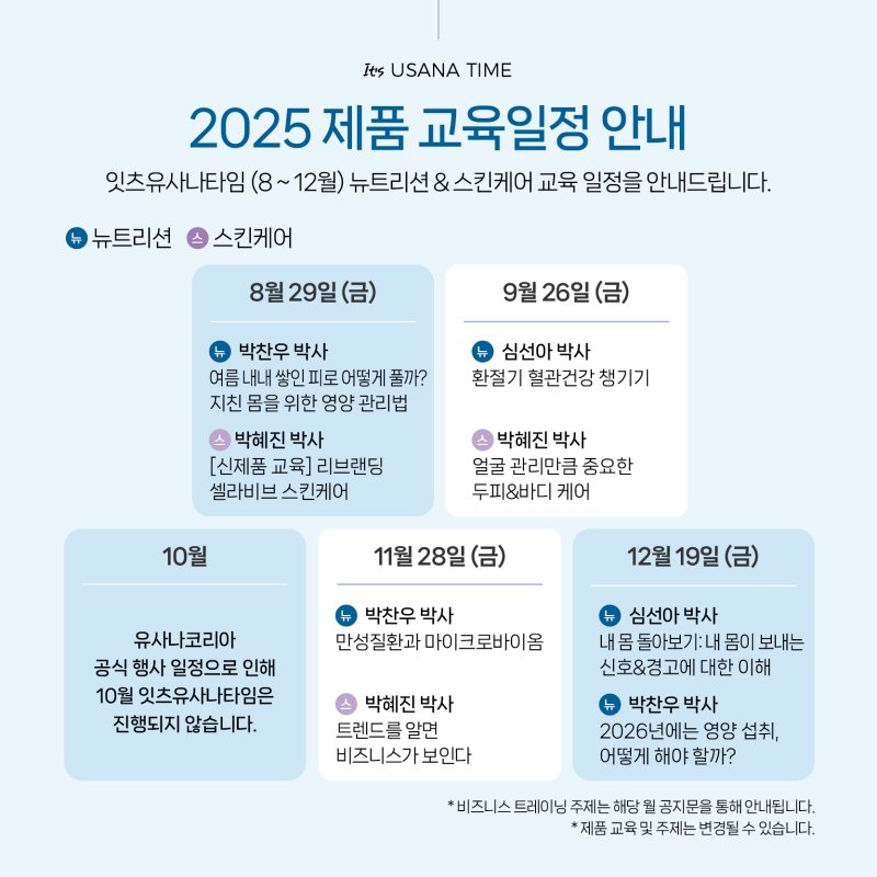 바로 유사나의 대표 교육 프로그램, 잇츠유사나타임(It’s USANA TIME)의 8월 행사입니다.