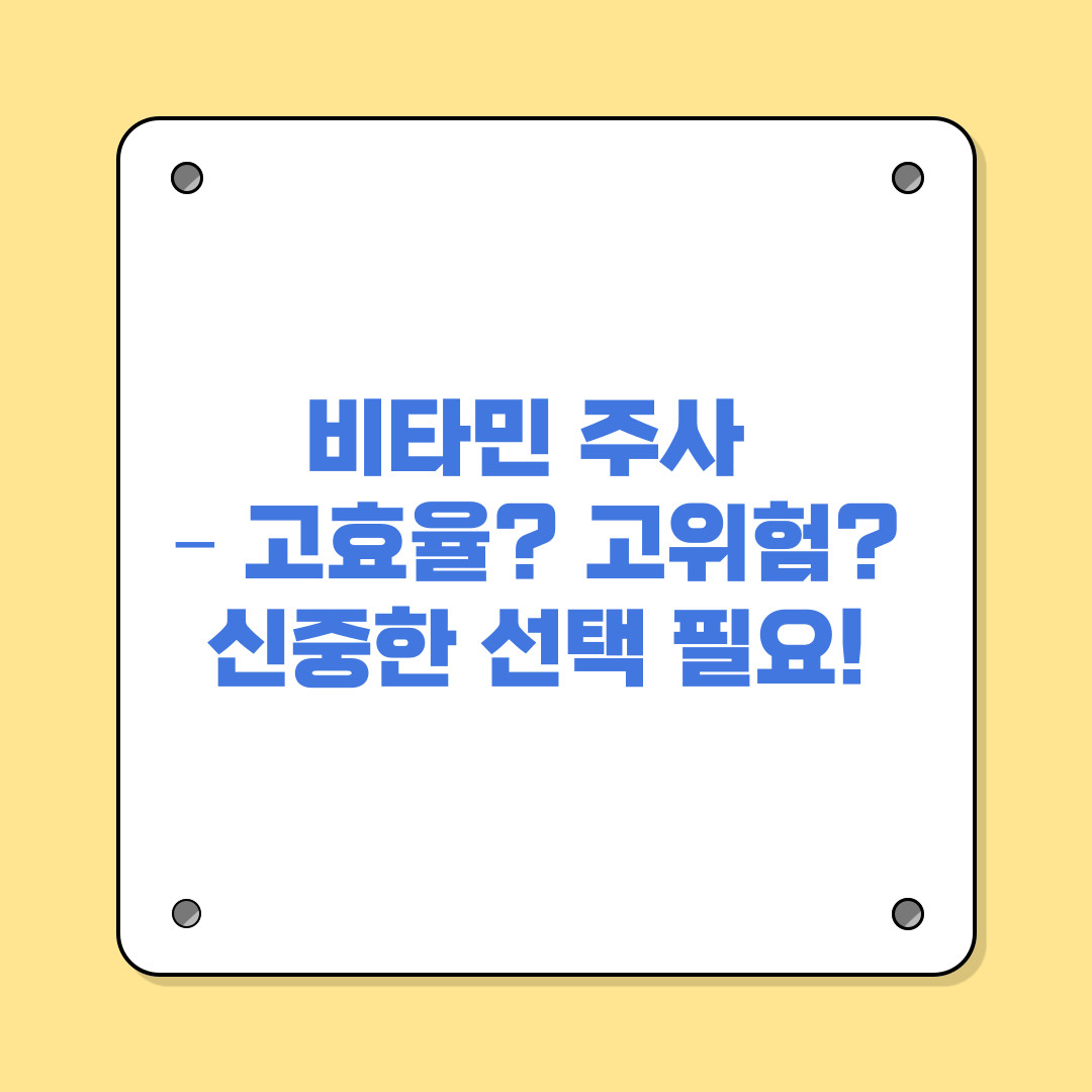 💉 비타민 주사 – 고효율? 고위험? 신중한 선택 필요!