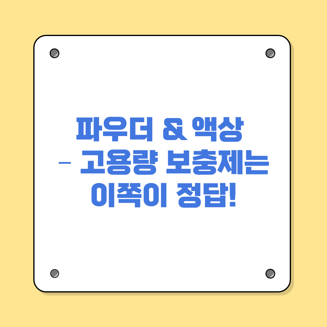 헬스 보충제나 고용량 섭취가 필요한 영양소는 파우더나 액상 형태가 효과적입니다.
