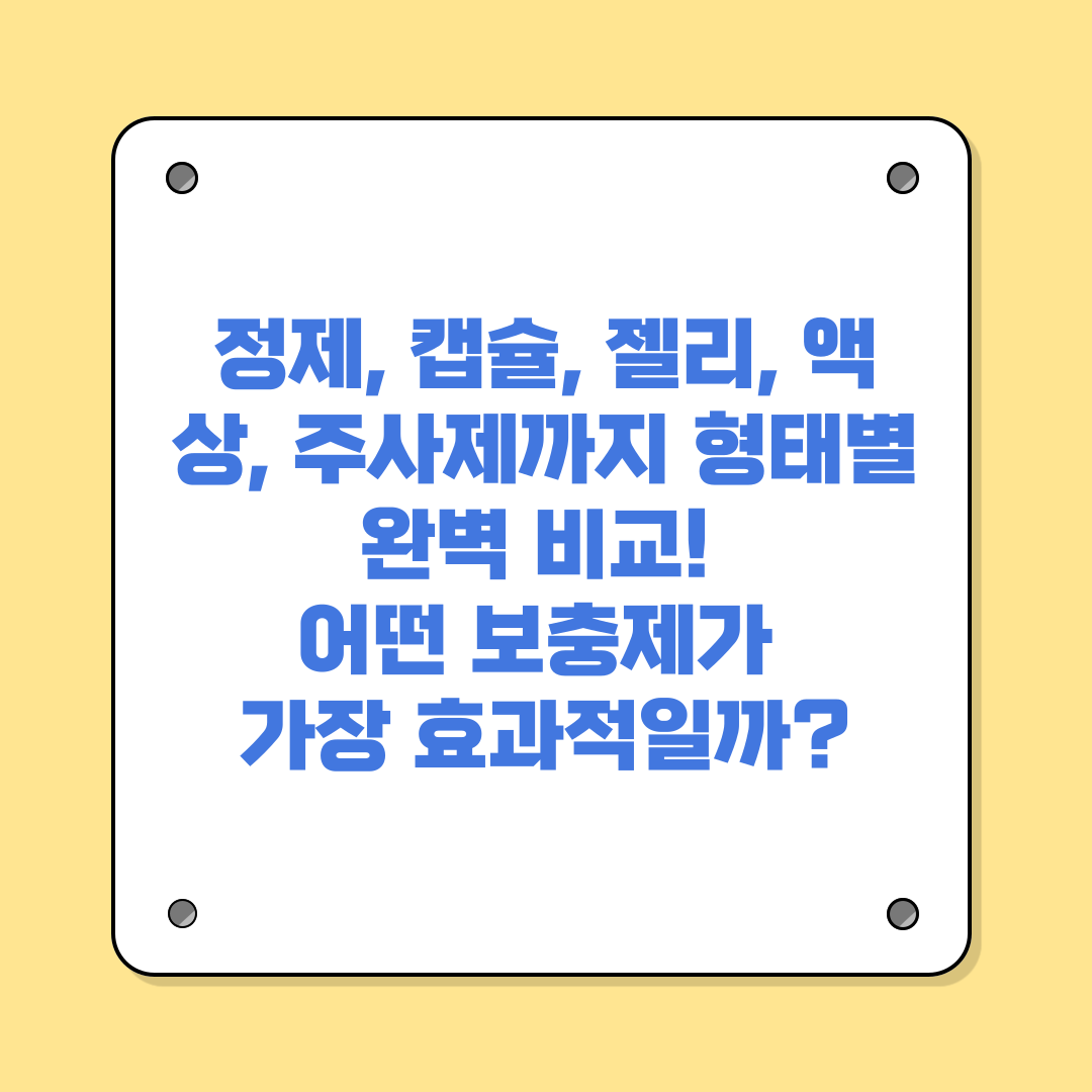 이번 포스팅에서는 ‘보충제 형태 비교’를 중심으로 각 유형의 장단점, 추천 대상, 주의사항을 꼼꼼히 정리했습니다.