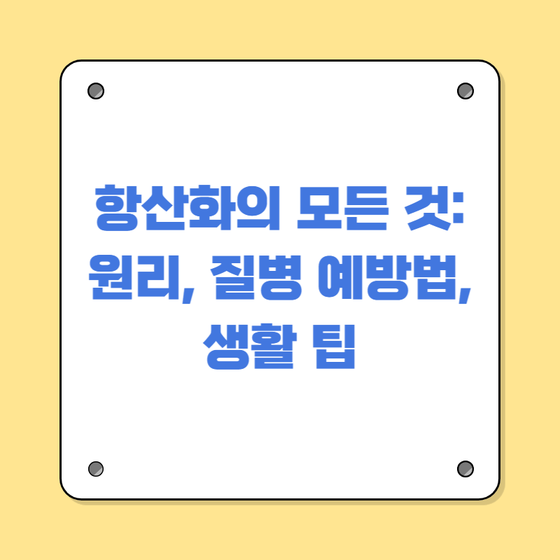 항산화는 단순한 건강 트렌드가 아닌, 우리 몸을 보호하고 건강한 노화를 유도하는 과학적이고 필수적인 과정입니다. 식습관, 생활습관, 적절한 영양제 섭취를 통해 활성산소를 효과적으로 관리하고 삶의 질을 높여보세요.